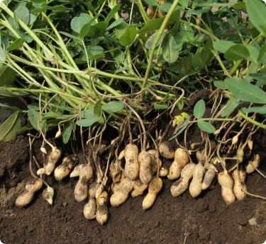 他のマメ科の植物同様に、落花生の根には「根粒菌」という、バクテリアの一種の土壌微生物が共生します。根粒菌は、根にこぶ状の根粒をつくって株から栄養をもらう代わりに、植物の生育に欠かせない窒素を空気中から固定して植物に与えます。そのため、落花生は窒素系の肥料の使用量が少なくて済み、また、土壌に窒素成分を蓄積するので、地力改善にも大きな貢献をしています。