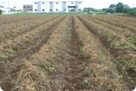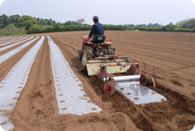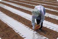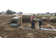 堆肥、肥料を施した畑を整地した後、透明又は黒の薄いフィルムを張ります。これはマルチといい、地温を上げて発芽の促進と初期の育成を助ける効果があります。