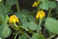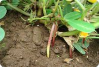 開花後1週間ぐらいすると花の基部から子房柄が地表に向かって伸び始め、さらに4~5日すると先端が地中に侵入し、やがて先端が肥大を始めて莢実(豆)になります。