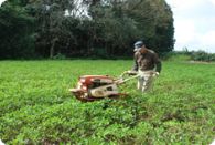 病害虫の発生状況に応じて薬剤を散布します。また、うね間を機械で中耕・土寄せをして雑草を防除します。土寄せは子房柄の土への侵入を助けます。