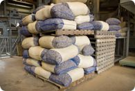 莢実は30kg入りの袋に詰めて収納し、農家は通常この荷姿で土莢と言われる落花生を販売します。茎葉は堆肥にして畑に戻します。