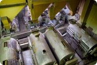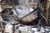 莢実を釜に入れて約180℃で約1時間、煎り具合を見ながら丁寧に煎り上げると煎り莢落花生ができあがります。煎り豆落花生はむき実を約160℃で25分程度煎って仕上げます。