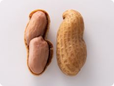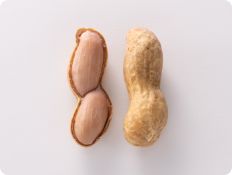 商品としては、実の大きさにより大粒種と小粒種に大別されます。大粒種は、バージニアタイプあるいはその他の系統との中間タイプに属し、よく育った殻には大きめの実が2個入っています。私たちが実の形のまま食べているのは、ほとんどが大粒種です。煎り莢(さや)、煎り豆、バターピーナッツや豆菓子などに加工されています。これに対して小粒種はバレンシアあるいはスパニッシュタイプなどバージニアタイプ以外のもので、殻にはやや小ぶりの実が3~4個入っています。小粒種は、主として搾油、調理用食品、菓子などの原料になります。FAO(国連食糧農業機関)の統計で落花生が油糧作物に区分されているように、世界の落花生需要の多くは搾油用で、世界の栽培品種のほとんどが小粒種です。
